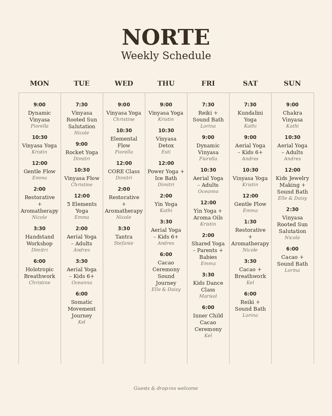 Potential Risks: There are inherent risks of various physical and mental conditions, illnesses and injuries associated with engaging in any exercise program. Such risks include all types of physical injuries and illnesses such as, but not limited to, sprains, strains, broken bones, concussions, lacerations, abnormal blood pressure, heartbeat disorders, fainting, shortness of breath, chest pain, strokes, heart attack or even death. Confidentiality: Participant’s medical information will be treated as confidential and will not be revealed to any person (other than the instructor(s) involved in the participant’s exercise program without written consent. Inquiry and Freedom of Consent: I have read the foregoing and I understand and accept the inherent risks of participating in an exercise program. Except as may be described in any applicable physician’s release form, I certify that I am in good health and I have no condition that would limit or prohibit my participation in an exercise program. I agree and consent to voluntarily engage in any and all exercises and physical activities with instructors at Norte Nosara at my own risk and with full knowledge and appreciation of any and all dangers and risks inherent therein. I assume full responsibility for any and all risks of bodily injury, illness, death and/or property damage suffered by me. I acknowledge that I am hereby advised to obtain any necessary medical clearances from my physician and to undertake a physical examination prior to beginning any exercise program or activity. I agree and consent to the administration of any immediate resuscitation measures deemed advisable by my instructor or other qualified personnel, although such personnel are not obligated to administer such measures. Waiver of Liability/Indemnity Agreement: I hereby release, waive, forever discharge and covenant not to sue Norte Nosara Guesthouse & Studio or my instructor from and for any and all loss or damage and any claims or demands of any type, known or unknown, now or in the future, on account of or in any way related to any illness, condition or injury to my person or property, or my death. I hereby agree to indemnify and hold harmless my instructor and Norte Nosara Guesthouse & Studio from and against any and all claims, obligations, judgments and damages arising from or relating to any illness, condition, injury to my person or property, or my death, or as a result of engaging in any exercise or activities at Norte Nosara, or any use of equipment or facilities at Norte Nosara. THE INDEMNITY OBLIGATIONS IN THIS PARAGRAPH APPLY EVEN IF THE ALLEGED CLAIM OR LOSS WAS ALLEGEDLY CAUSED IN WHOLE OR IN PART BY THE NEGLIGENCE OF NORTE NOSARA GUESTHOUSE & STUDIO OR ITS AFFILIATED INSTRUCTORS, AGENTS, OWNERS, OFFICERS, DIRECTORS OR EMPLOYEES.